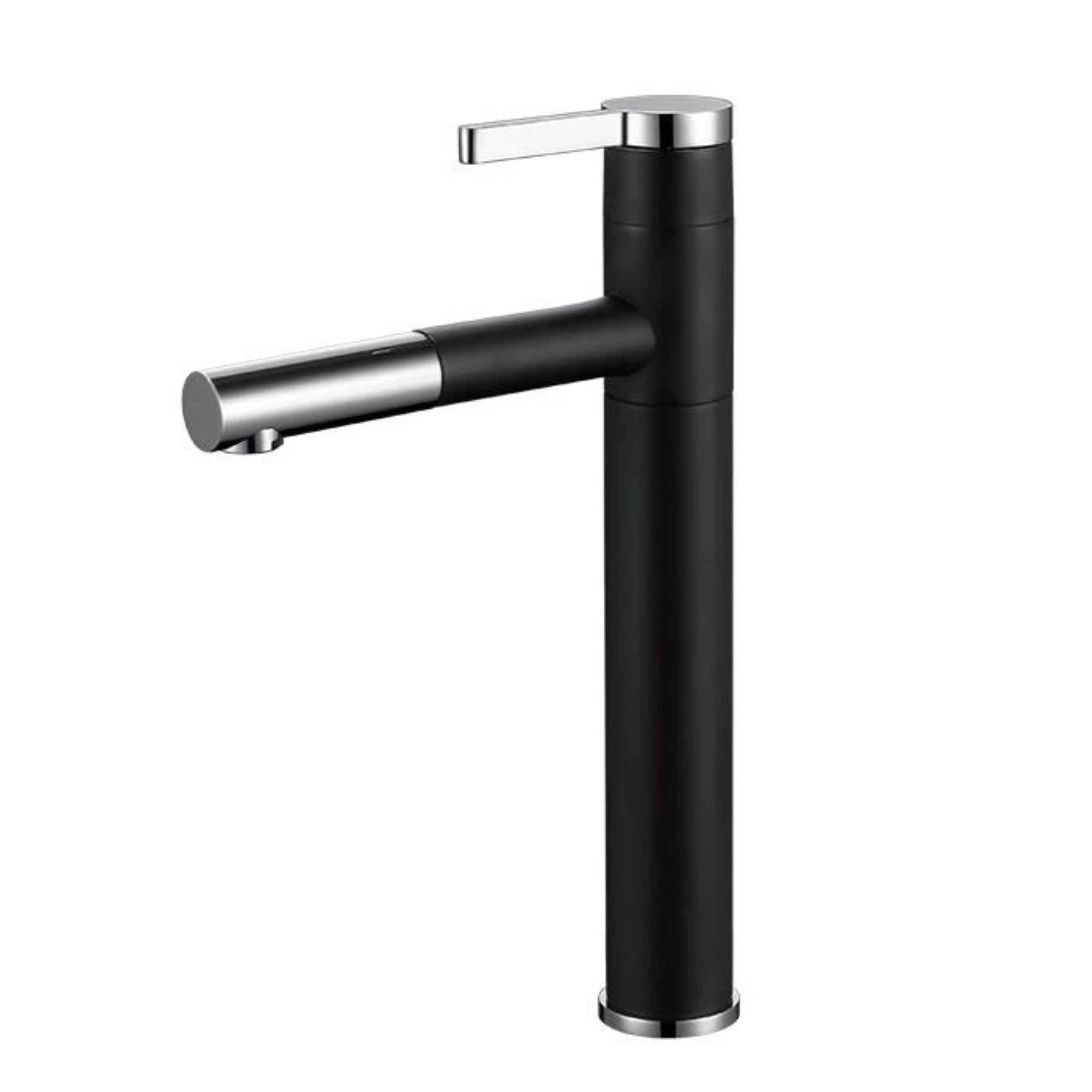 Vòi rửa thấp đầu xoay đen là lựa chọn lý tưởng cho phòng tắm và bếp hiện đại.